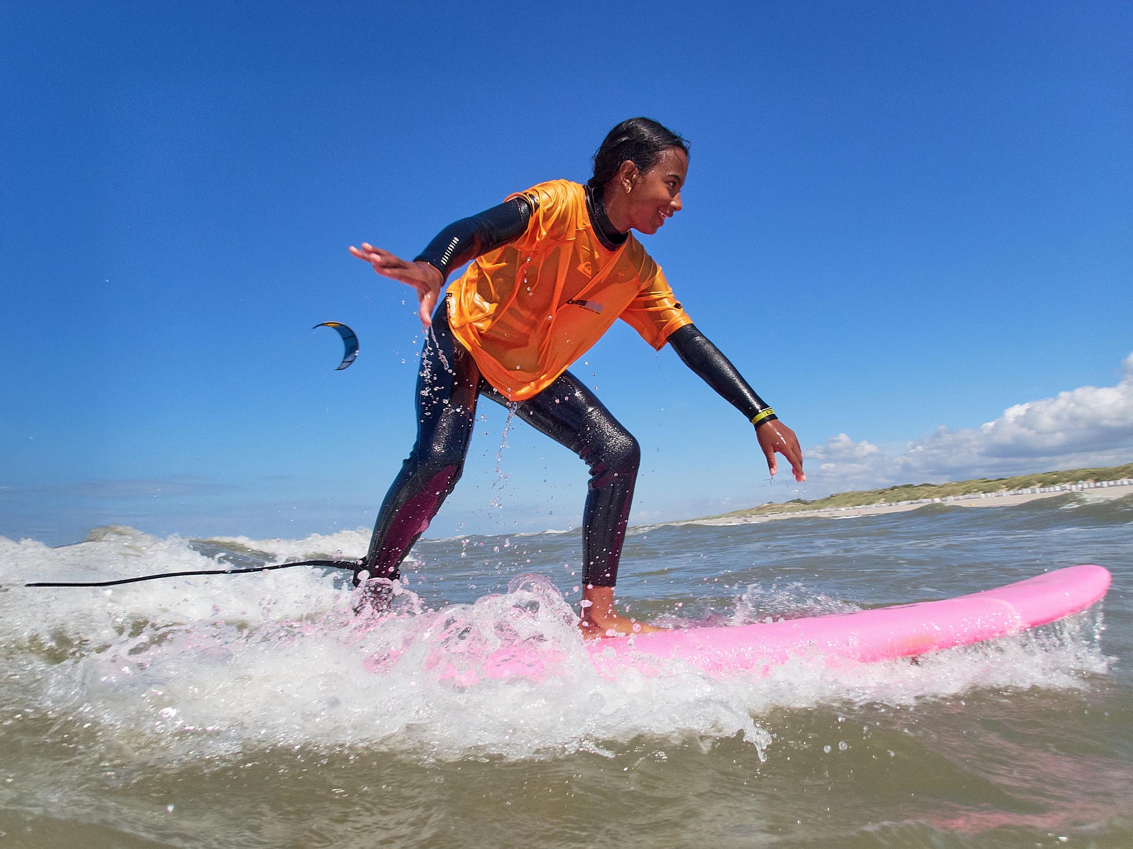 | Bodyboard, golfsurfen, giant suppen, powerkite en zeilwagen en leuke strandactiviteiten. | Focus op golfsurfen (short- & longboard), windsurfen, suppen & giant sup, zeilwagen, powerkite en beachvolley |